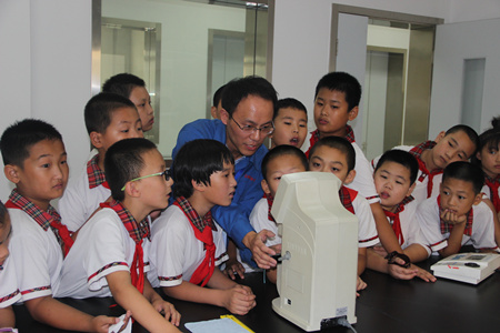 活动现场,质检中心专业技术人员通过生动活泼的例子、深入浅出的教学方式、简单直观的实验向“小质检员”们介绍了抽油机的工作原理、金属材料的力学性能、灯具的安全使用、室内空气的检测等知识。